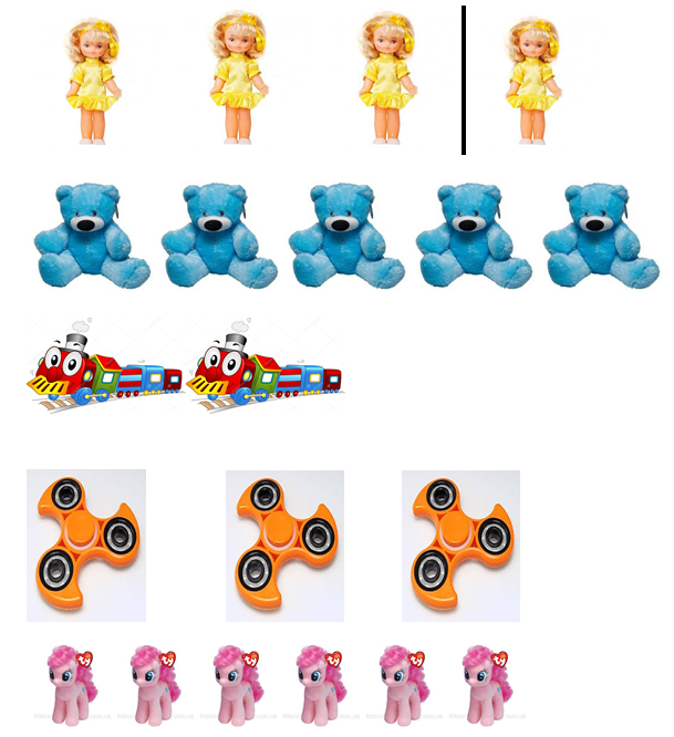 - Let′s repeat after me! (повторюємо назви іграшок лялька, мяч, літак, потяг, машинка, ведмедик, солдатик, спінер, кубики, робот, поні)