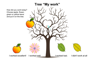 - Діти, виберіть малюнок, який ви вважаєте, що відповідає вашій роботі на уроці і наклейте на чарівне деревце, яке називається «My work».